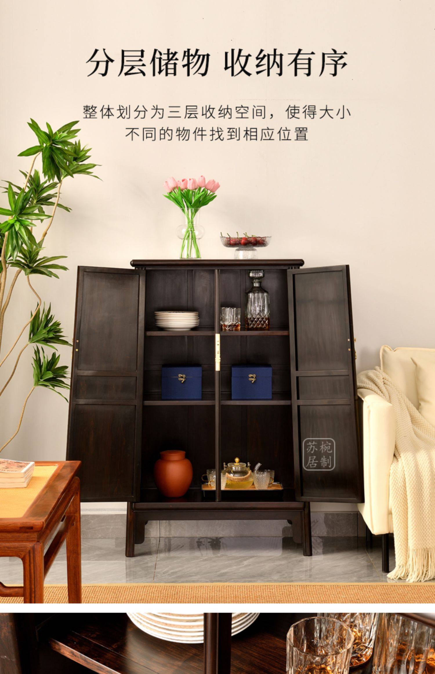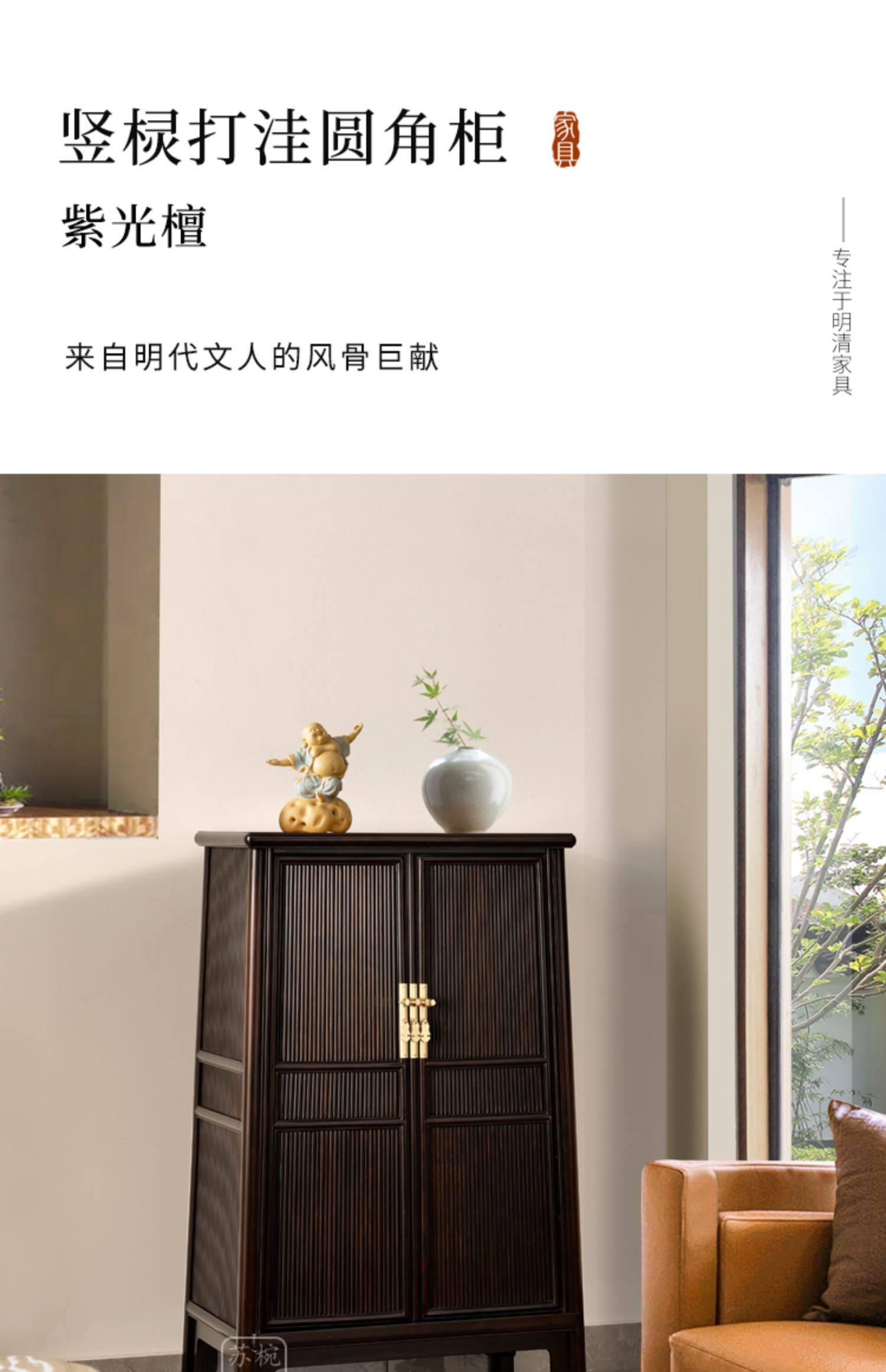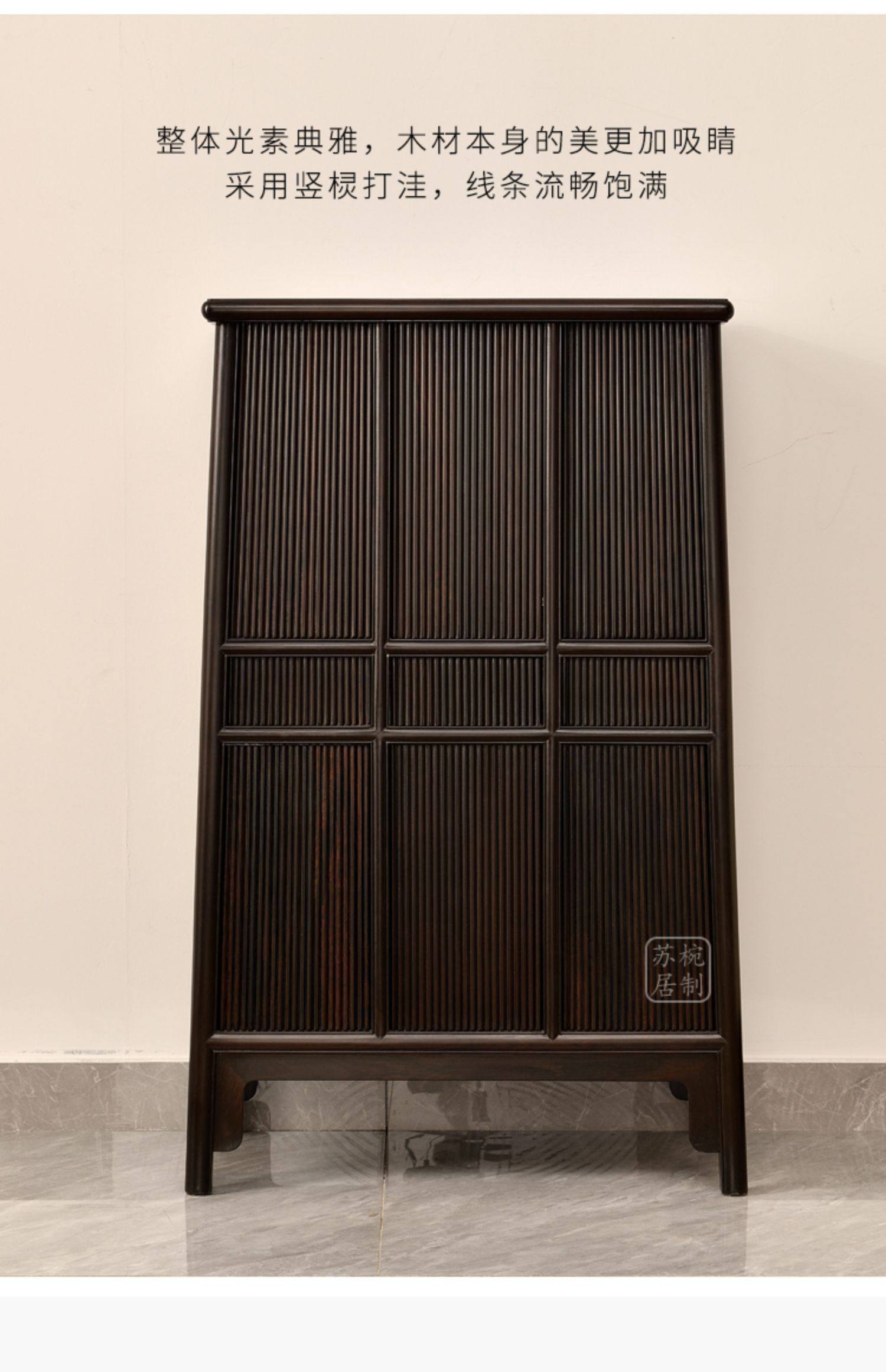 • 商品名称:紫光檀竖棂打洼圆角柜红木明式收纳柜中式储物柜面条柜