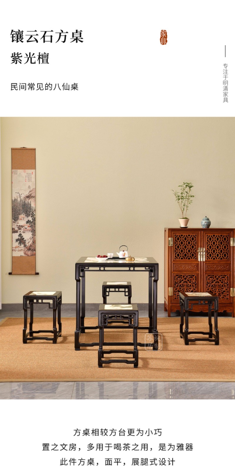 • 商品名称:紫光檀云石面四方桌红木新中式家具正方形茶桌一桌四凳