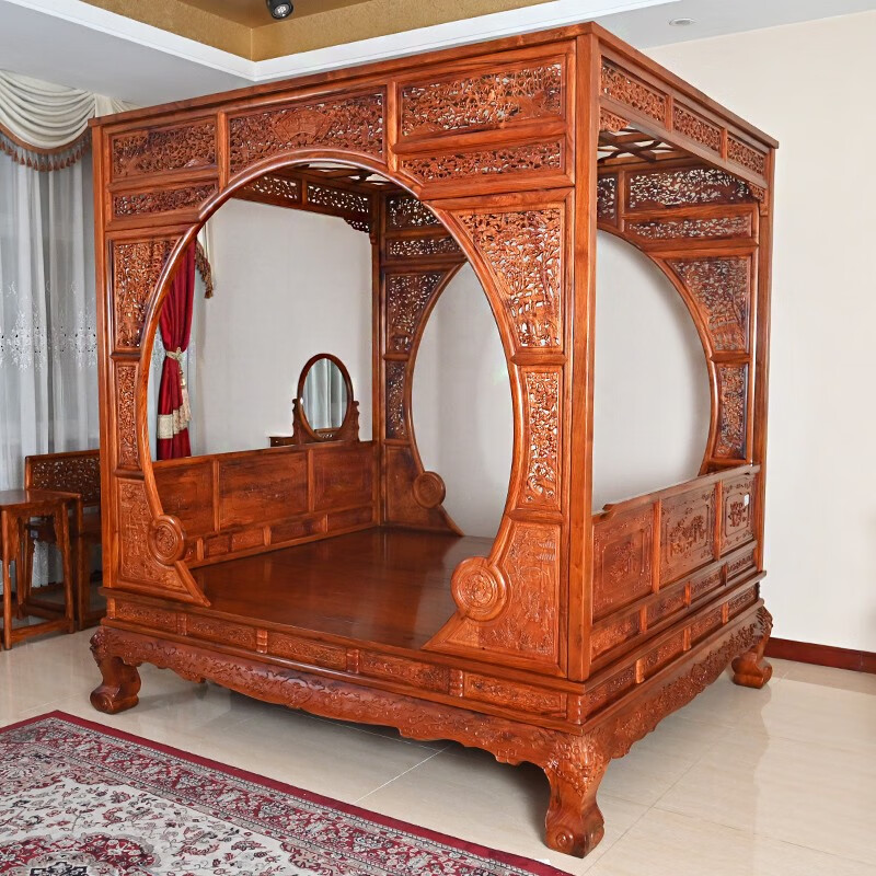 • 商品名称:红木家具海南黄花梨(学名:降香黄檀)实木架子床中式古典卧室家具月洞式清式双人床 至尊荣等级