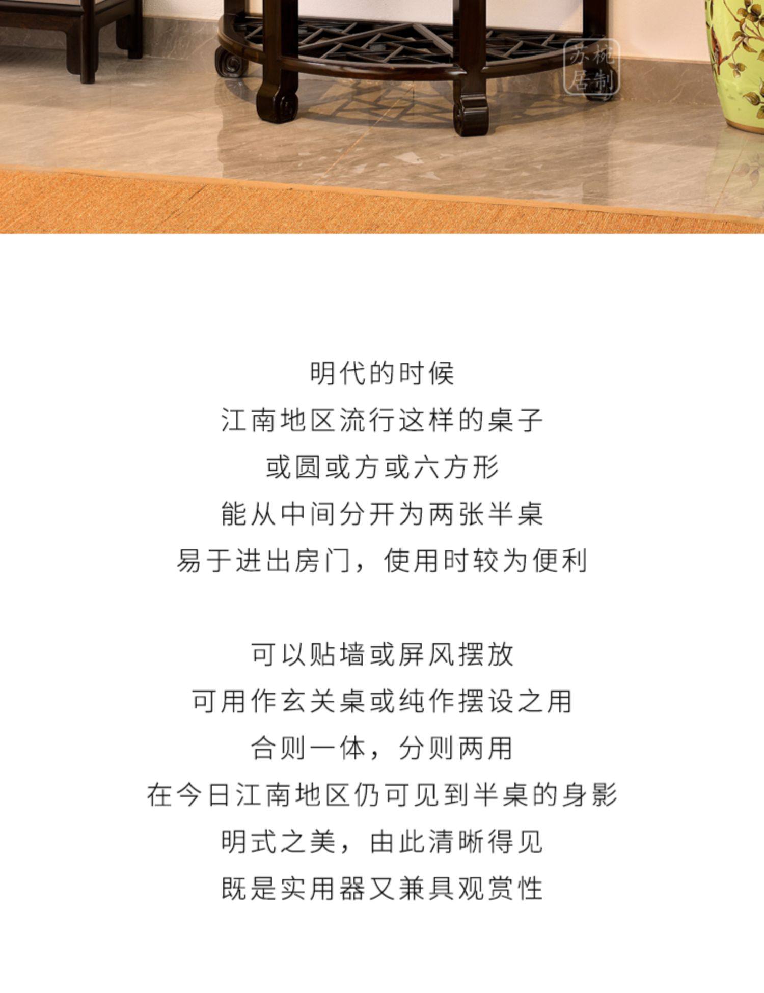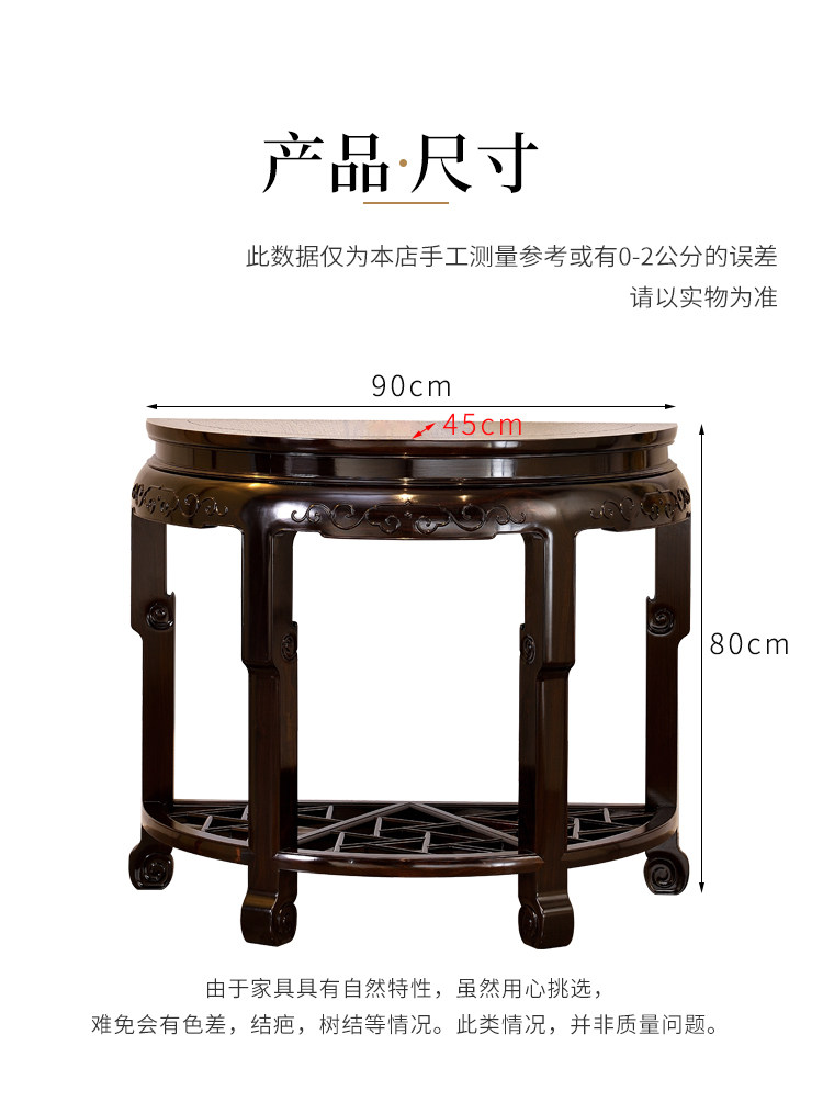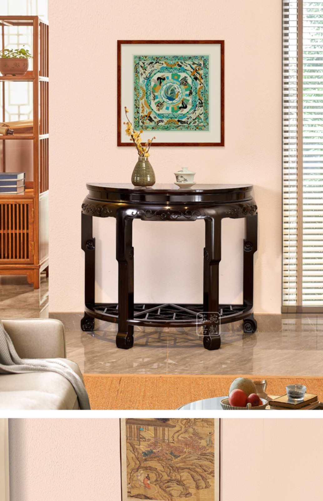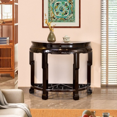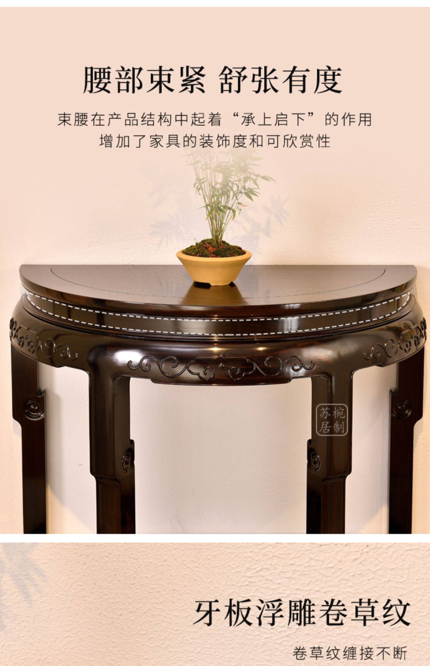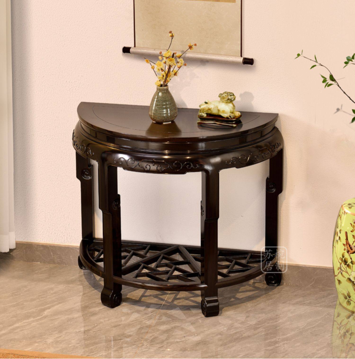 紫光檀卷草纹半圆桌红木明式玄关桌端景台靠墙玄关台
