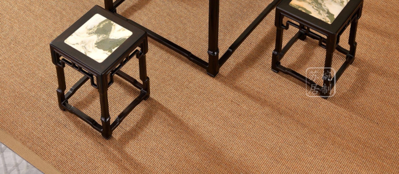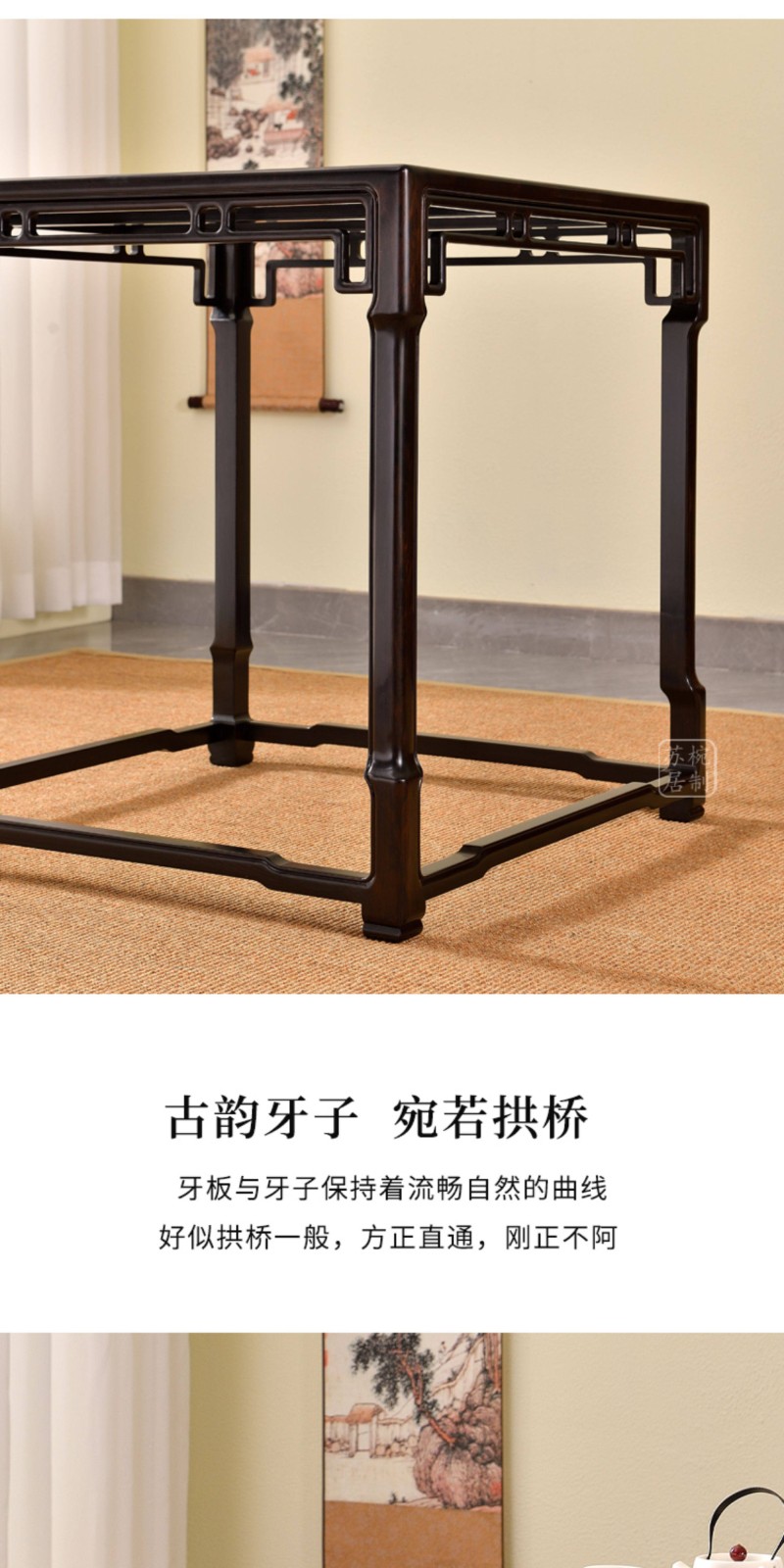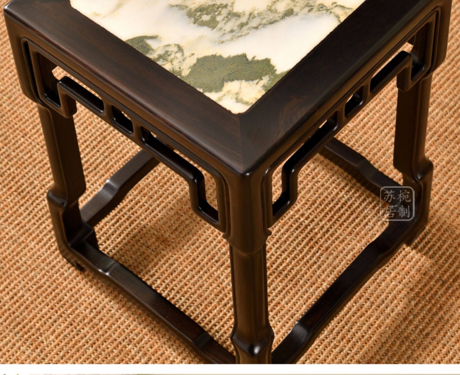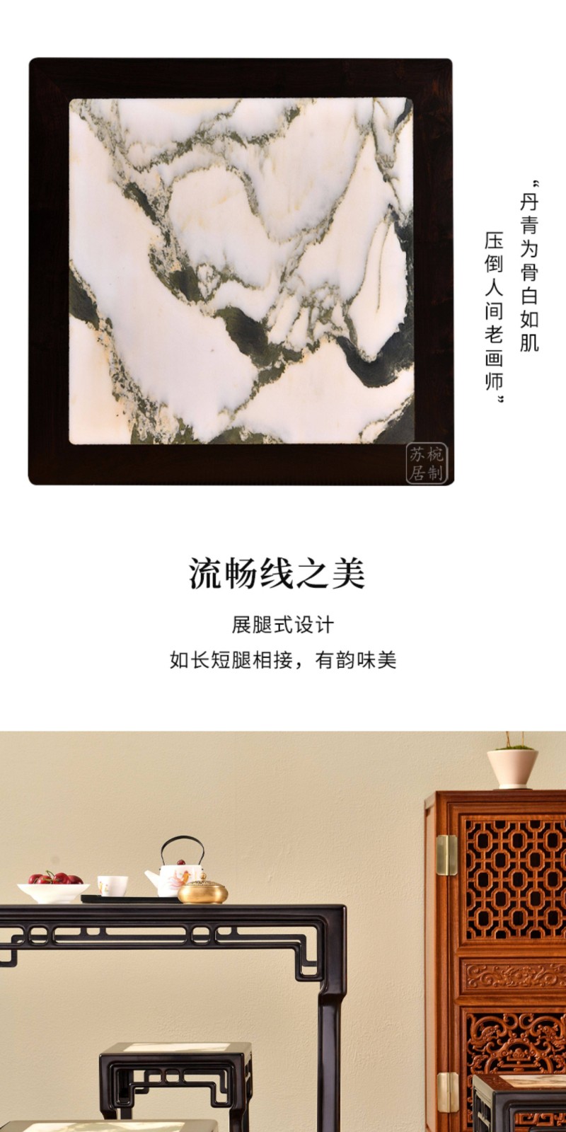 紫光檀云石面四方桌红木新中式家具正方形茶桌一桌四凳